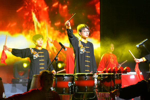 主题晚会分为“觉醒·担当”“青春·奋斗”“强国·有我”三个篇章,并对共青团工作考核先进单位、五四红旗团支部、十佳大学生、十佳青年志愿者、十佳自强之星、优秀共青团员、优秀共青团干部等11类先进集体和个人进行颁奖表彰。一场令人期盼已久的主题晚会在一首雄壮激烈的鼓乐节目《新编龙腾虎跃》中正式开启,朗诵《风范与家产》、群舞《活着1937》、歌曲联唱《映山红》《不忘初心》《万疆》《我爱你,中国》、独唱《裹着心的光》、朗诵《你们•我们》、四重唱《如愿》、街舞与武术表演《武动青春》、歌伴舞《有我》、视频作品《理想·未来》、大合唱与器乐合奏《万泉河水清又清》《我和我的祖国》精彩纷呈,表演或深沉婉转或激昂澎湃,再现了一代又一代青年与党同心、跟党奋斗,在革命、建设和改革的历史进程中,激扬青春,建功立业,开拓人生,用生命和热血书写凌云志、谱写凯旋歌的动人场景。晚会将艺术味、思政味、青年味、时代味完美融合,发出了“请党放心 强国有我”的青春誓言,奏出了“艰苦奋斗 强我中华”的青春最强音,使线上线下一万多名师生观众为之动容,在领略艺术之美中深受精神洗礼。浓浓的爱党爱国爱团情怀洋溢在田径场上,表达在线上留言区里,曲终舞散,很多人还久久不愿离去,一起唱和晚会歌曲,回味晚会意蕴。